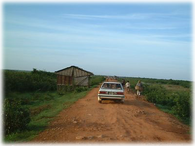 ![]() 未舗装道路をガタゴト……。カンボジアは街からちょっとはずれるとこんな田舎地帯が延々に広がってます |