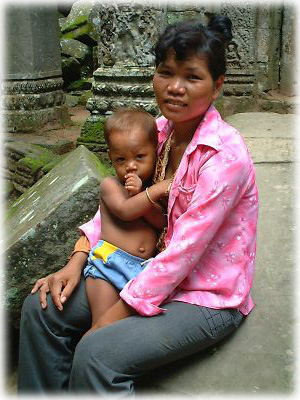アンコール遺跡で出会った赤ちゃんとお母さん。赤ちゃんがしっかりママのおっぱいをさわってるのがカワイイ |