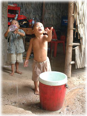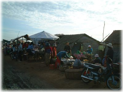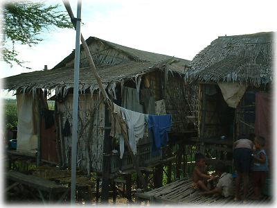![]() カンボジアの田舎の典型的な風景。ココナッツぶきの家に裸電球がぶらさがっているのを見ると、この国はまだまだ発展途上国なんだなあと感じます |