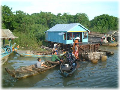 ![]() シェムリアップ〜プノンペンまでの船からはボートハウスに暮らす人々の生活が垣間見れます。ボートハウスもリッチなものから質素なものまでさまざま。人々は家々の間を小さなボートに乗って移動してました |