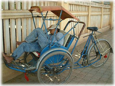 ![]() お昼寝第2弾、リキシャマン。それにしてもカンボジアではいたるところでお昼寝してる人を見かけた。まあ暑いから、ゆっくりいきましょって感じ? |