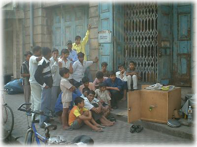 ![]() 大都会といえども、やっぱりインドらしさは残ってます。道ばたに置かれたテレビを食い入るように見る人々。日本の昔もこんな感じだったのかしら? やっぱり男性ばっかりなのもインドならでは |