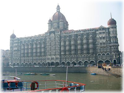 ![]() ボンベイといえば、このタージ・マハル・ホテルが名高い。今世紀の最高建築のひとつともいえる、豪華絢爛さ! 1903年の完成当時、アラビア海を面して建てられたのが画期的だったらしい |