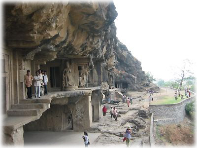 ![]() ところ変わって、エローラ遺跡に到着。世界遺産にも指定されているこの遺跡は、広大な敷地に30以上もの石窟寺院が並んでいる |