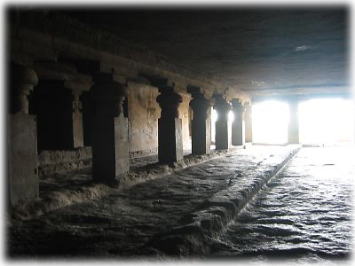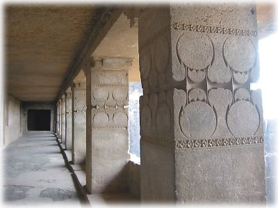 ![]() インドにおいて仏教が衰退してきた7世紀〜8世紀にかけてに建てられたのが第1〜12窟。写真は中でもいちばん大きな第5窟。内部はひんやりしていて気持ちがいい |