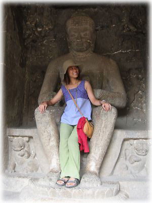 といいつつ、座り心地のよさそうな仏様を見つけるとついつい私も……。日本の仏像と違うのは、彼らは座禅を組んでいないこと。ほとんどがダラリと足を垂れて座っていました |