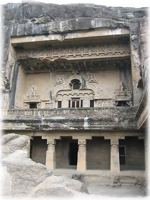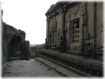 上から見た第13窟の入口。この建物は彫刻が美しく、シヴァ神やらパールパティやら牛やらがところ狭しと舞っていました |