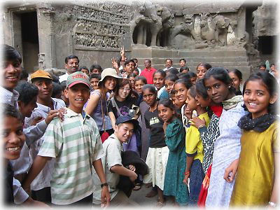 ![]() 例によって例のごとく、見学に来ていたインド人学生に取り囲まれ、一躍人気者に。このあと、握手やらサイン(!)やらを求められてしまいました |