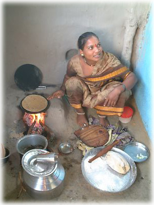 ちょうどお昼どきだったせいか、台所でお母さんがせっせとチャパティを焼いていました。「ホラ、食べなさい!」とすすめられるままにほおばると、これが実に美味。農村の人は本当においしいものを知っているんですな |