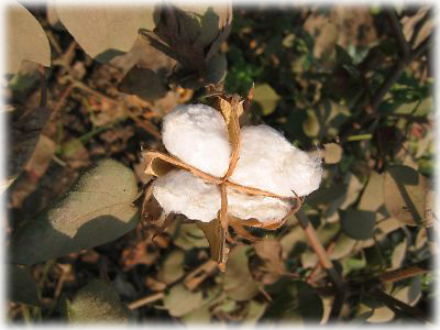 ![]() インドといえばインド綿が有名。畑にはちょうど綿をいっぱい付けた実がはじけていました。これが布になって洋服になって日本に輸出されたりすることを考えるとなんとなく不思議 |