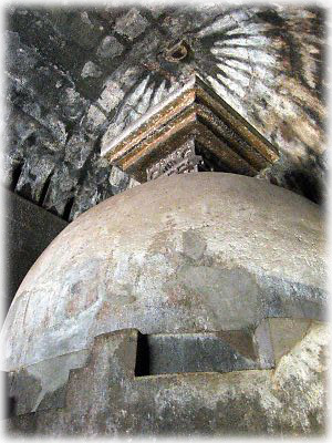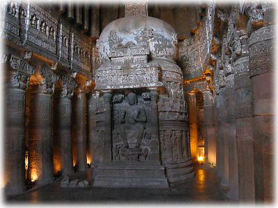 アジャンタの壁画に並んで印象的だった、紀元前1世紀に立てられた第9窟のストゥーパ(仏塔)。このストゥーパは仏教表現のない時代に信仰の対象となったもの。原始宗教の不思議なオーラが漂っていた |