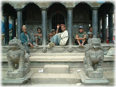 ![]() パタンの名もなき(や、ホントはあるんだろうけど)寺院で、昼まっからブラブラしているおじちゃん、お兄ちゃんたち。みんなやたら楽しそうでした |