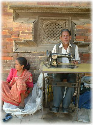 路上で店開きしていた仕立て屋とその妻。キチっと背を伸ばした主人とダラリとしている奥さんが好対照 |