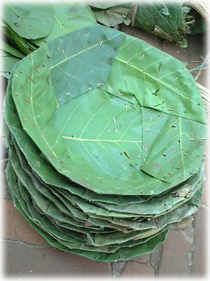 マーケットではバナナの葉っぱのお皿を発見! これにカレー入れて食べたらおいしそう! |
