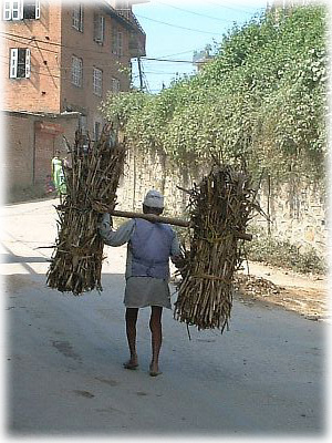 健脚そうな足取りでもって薪を運ぶおじさん。ネパール人男性はみないい脚してます |