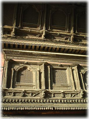 普通の民家の窓を飾っていた、普通じゃない美しさのネパール彫刻。街中いたるところにこういった彫刻がなされているのだから、ため息が出る |