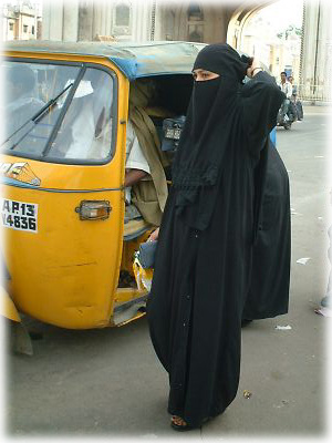 「ハイダラバード」、「アーラマバード」など「バード」という言葉がついている街は、イスラム教の影響を受けている。なかでもこのハイダラバードはインドでもいちばんムスリムが多いエリア。街を歩く女性も真っ黒なチャドルをまとった人が多い。私たちはこっそり「黒忍者」と呼んでいました |