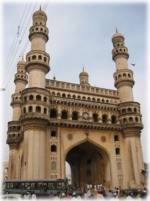 ハイダラバードのシンボルと言えばこのチャールミナール。四つの尖塔という意味で、1591年にクンドゥブ・シャーヒー朝の王様によって建てられた |
