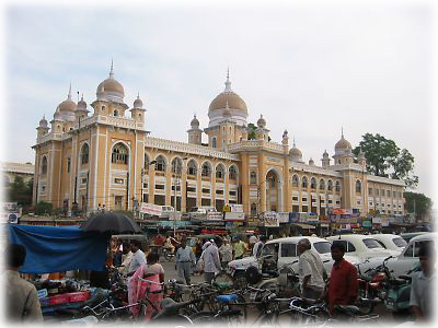 ![]() チャールミナールの向かいに、ゴージャスな王宮風の建物が。「アレは何?」と聞いたところ、病院だとか。ずいぶん立派な建物です |