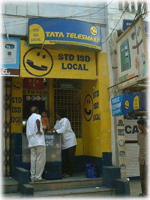 ハイダラバードの電話屋さんはこんなにキュート。誰が考えたのか知りませんが、スマイルマークの電話屋マーク、ついつい電話をかけたくなっちゃうと思いませんか? |