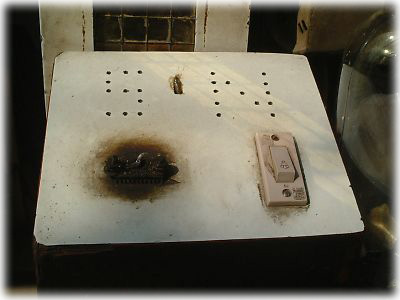 ![]() はて、これは何? 答えは……タバコ屋さんの前においてあった、電源式ライター。黒い部分にたばこの先をあててスイッチを入れると、電流が流れることによって火がつく。こういうものを見ると、インド人の賢さ? に不思議な気持ちになります |