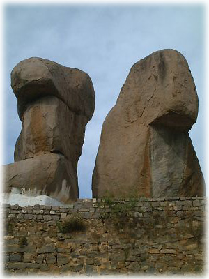 お城のてっぺんにデーンと陣取っている巨石。誰かに聞いたわけではないですが、この形から想像するにヒンドゥー教のご神体として知られるリンガ(男根)かと思われます |