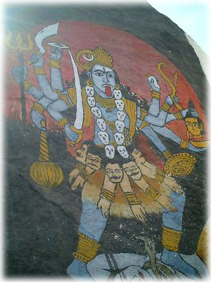 お城のてっぺんにはシヴァ神をまつったヒンドゥー寺院が。それにしてもこの絵、ポップなんだかおどろおどろしいんだか…・・・ |