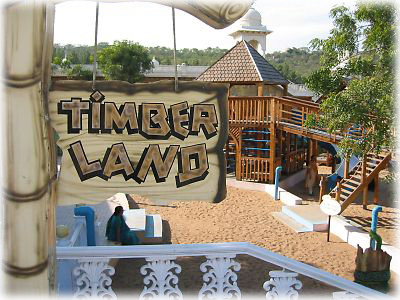 ![]() 「TIMBER LAND」と名づけられたアスレチック・スポット。置いてある設備はヘボいけど(失礼!)、こうして見てみると、なんとなく日本のディズニーランドを思い出す |