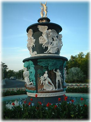 ![]() RAMOJI FILM CITY内はポップだかなんだかよくわからない建物やら塔が満載。「あ、あっちにへんてこな像があるよ〜」と走って行ってパチリ |