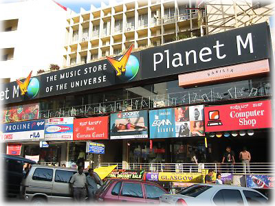 ![]() バンガロールの目抜き通り、MGロードのそばには大型CDショップ「Planet M」がありました。日本のHMVみたいな感じ? |
