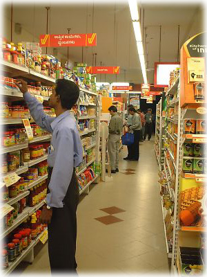 バンガロールにはこんなスーパーマーケットも。品揃えもいいし、ここがインドであることを忘れてしまうような光景です。はしゃいで写真を撮っているのは私たちだけ。最後には「撮っちゃダメ!」と怒られてしまった |