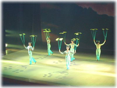 ![]() 上海雑技団の皿回しお姉さん一隊。このあと、皿を回しながら人の上に人が乗ったりするからたまげた |