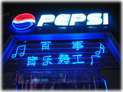 輝くネオンの中に吉野家を発見。日本では安い、早い……の定番なのに、ここではちょっとオシャレなレストラン。ちなみに従業員の態度も中国だとは思えないほどキチっとしてた |