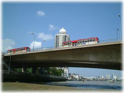 ![]() 船に乗っていると、ホントにバンコクって大都会だな〜と思う。川に沿って立ち並ぶのは、私たちには手の届かない高級ホテルばかり |