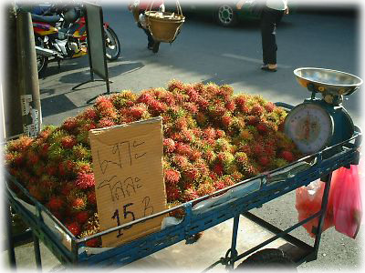 ![]() チャイナタウンで見かけたランブータン。このヒゲヒゲがファニーな感じ。外側をパカっと剥くと中に白い果肉が入ってる。味、ルックスともにライチに似てる |