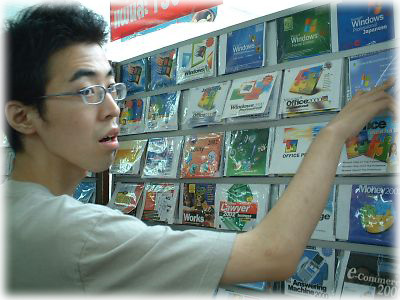 ![]() バンコクの秋葉原と称されるパンティップ・プラザに。パソコン用のソフトウェアやDVD、VCD、ゲームなどは選び放題で、まさに海賊版天国。あまりの数の多さと値段の安さにあいたお口がふさがらない。パンティップ・プラザの日記はこちら |