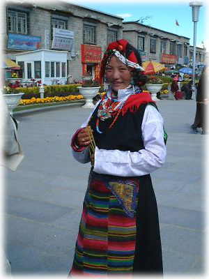 ポタラ宮の前をプラプラ散歩してたおばちゃんをパチリ。「今日は暑くて仕方ないわねぇ」 |