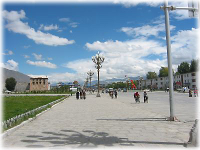 ![]() ジョカン前の広場はラサや地方から来た人の憩いの場。いつもなんとなく人で賑わってます。それにしても何気なく撮った写真でも空が近い |