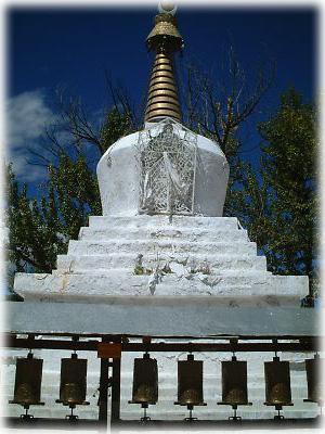街のいたるところでストゥーパが見られる。白く輝くストゥーパと青い空がシンプルにいい感じ |