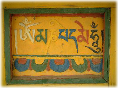 ![]() ビビットな色で描かれたマニ車の前の看板。ちゃんとひと文字ひと文字彫ってあって、あたたかみがある。それにしてもポップ |