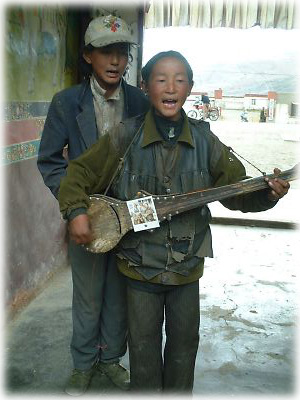 ラツェの宿に現れた、流しのチベット人少年。子供とは思えないしっかりした歌いっぷりでチベット民謡を歌ってくれた |