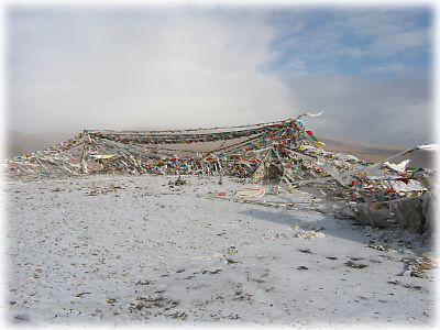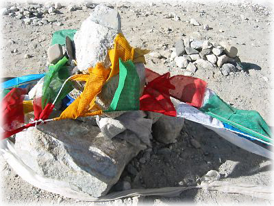 ![]() 私たちが張ったタルチョ。これからの旅の無事、それからここを訪れる旅人の無事を祈願して。しかし、こういうのを残すのはセンチメンタルな感じがしてまことにヨロシイ |