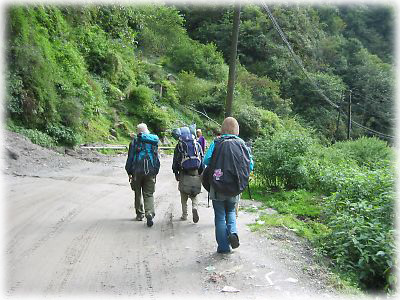 ![]() 出国スタンプをもらい、ネパール側のイミグレーションのある街、コダリを目指して歩き出す一向。この後、トホホな運命をたどることも知らずに……(詳しくはこちら) |