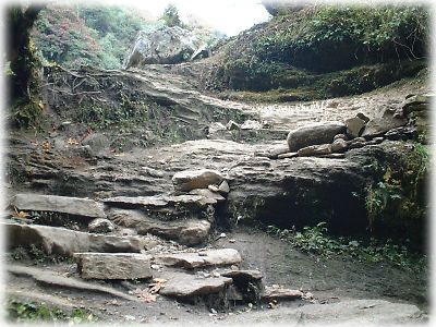 ![]() 山道といっても石段が組まれている。これがまたガタガタだから、置かないほうが歩きやすいのになーと思うけど、そうもいかない事情があるんだろう |