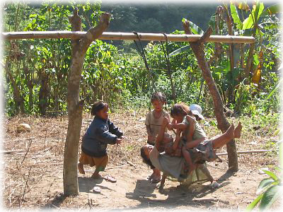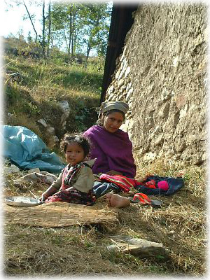 家の脇で作業をしていたお母さんと娘。村ではやはり女性が家のまわりの仕事をしていた |
