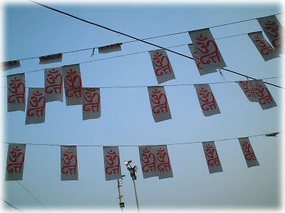 ![]() メインガートで行われていたプージャー(礼拝)。火を使っているだけに、ついつい目が話せない。この日は特設ステージから、デラックス・バージョンにてお届けしております |