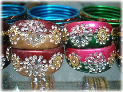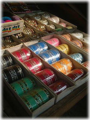 こちらが大人用バングルですね。このバングル屋さんはホント、どこの町でも見かけます。プラスチックのおもちゃみたいなものからガラス細工の施したものまで、ピンキリのラインナップ |