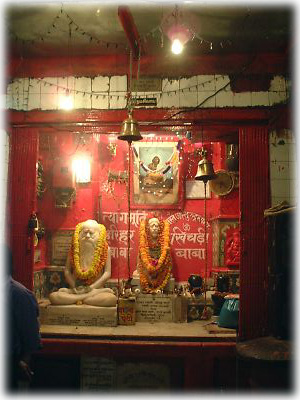 バラモン(僧)を祀った新しいほこらを道端で発見。首には真新しい花輪が誇らしげにかかっていました |
