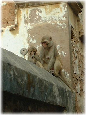 バラナシではいたずら好きの猿に注意! 夫も干していたパンツを一枚持っていかれました。だけどこんな小猿の姿はあまりにプリティーでしばしば見つめてしまう |