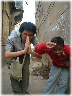 ![]() なんと、4年前にバラナシに来たときの写真&そのとき一緒に遊んでいた少年と再会! おおはしゃぎの妻・絵里現在26歳。インド人青年ラジェス現在18歳 |